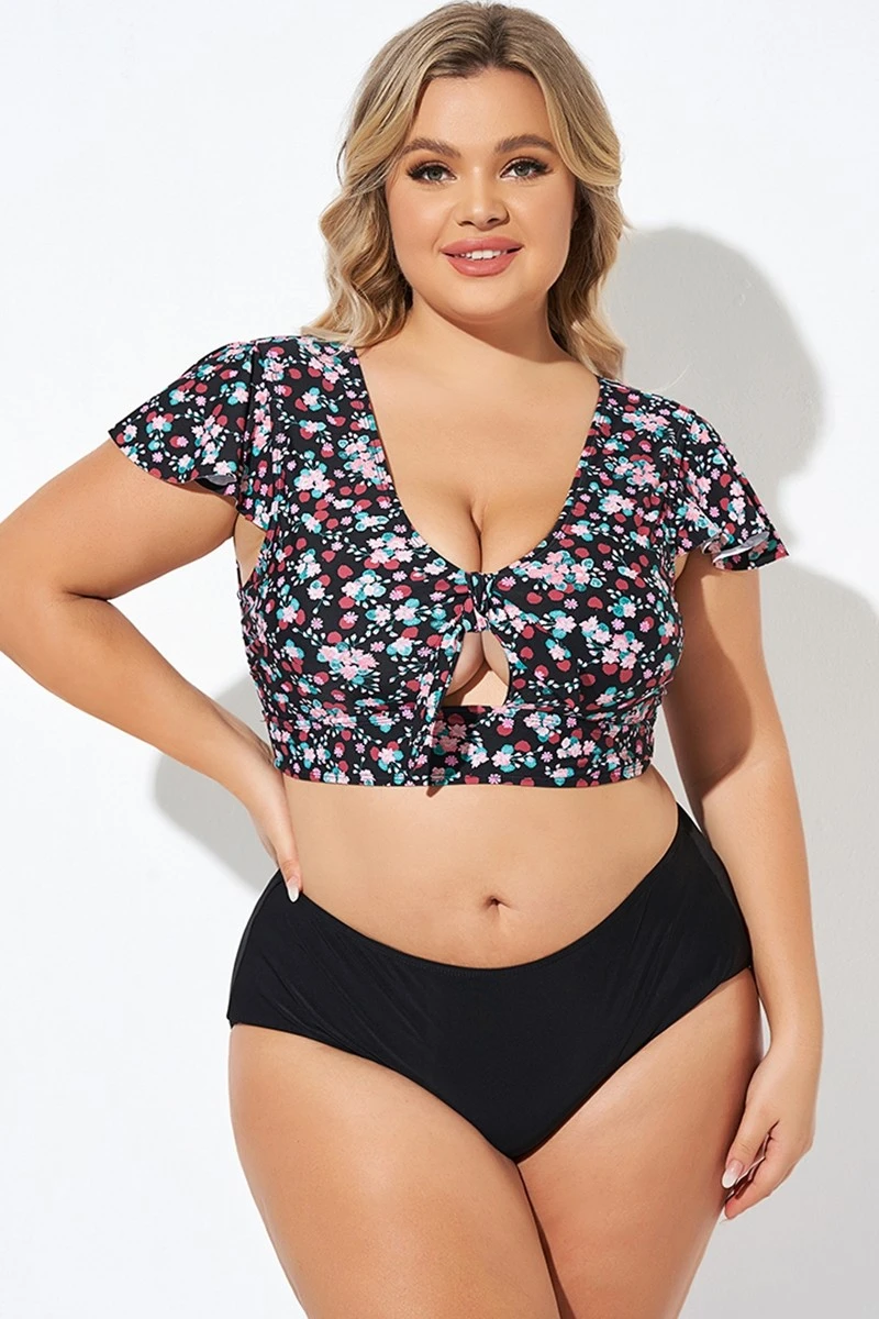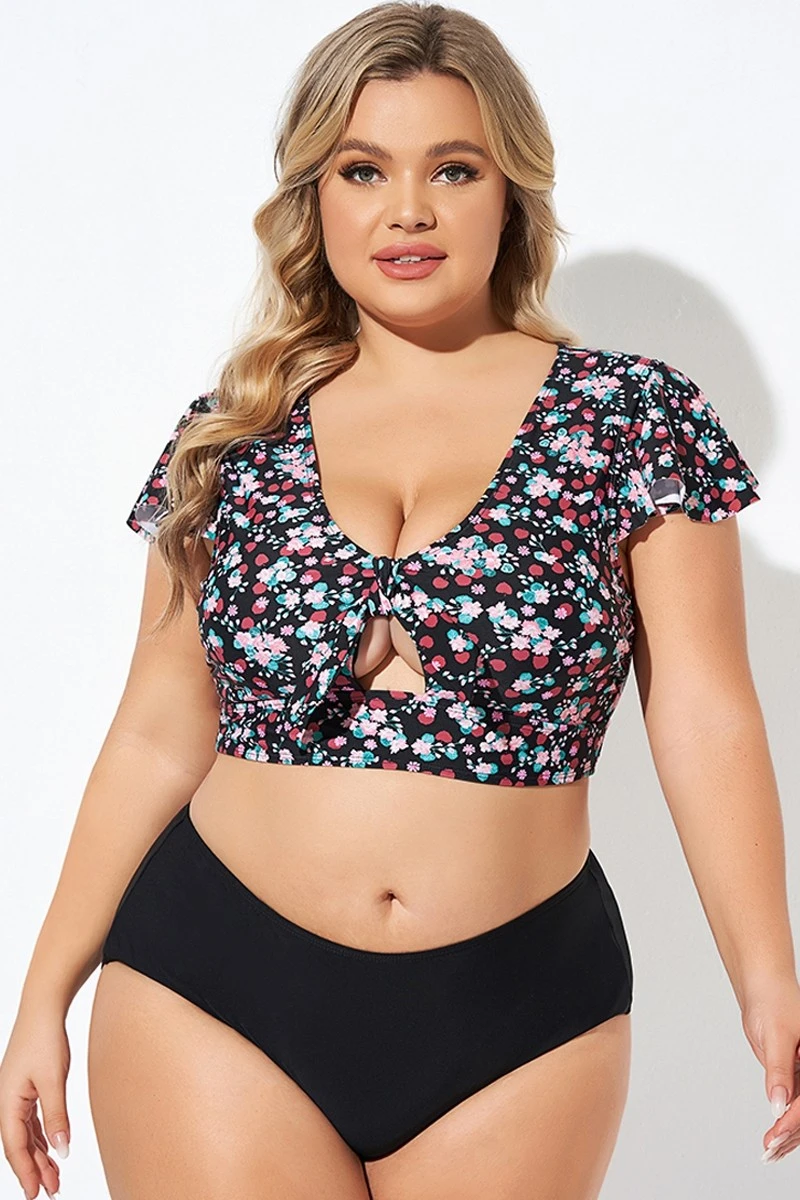 Classic Floral Print Knot Front Women Bikini Top -Bikini Bliss Shop b debk072004 3