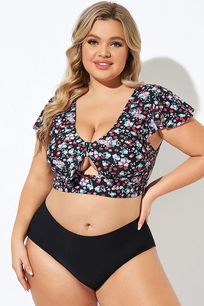 Classic Floral Print Knot Front Women Bikini Top -Bikini Bliss Shop b debk072004 5