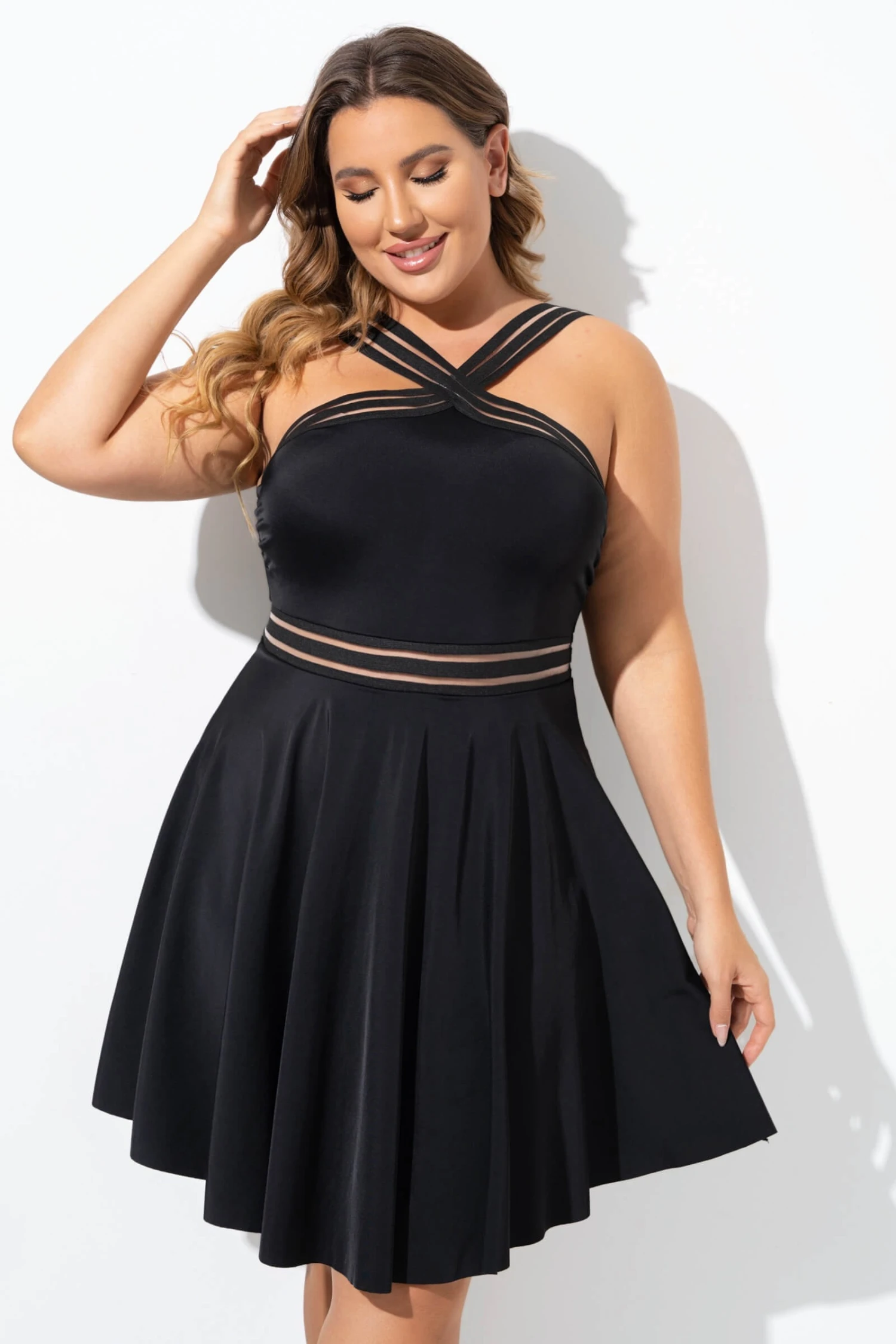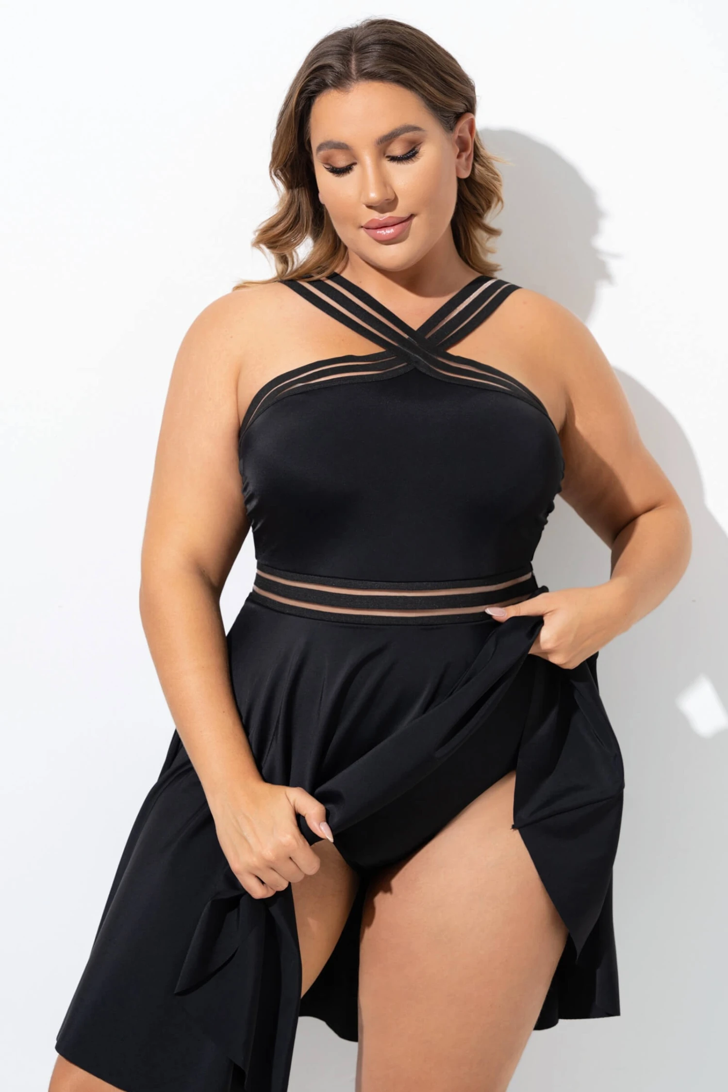 Graceful Black Mesh Panel Women Swimdress -Bikini Bliss Shop b desd091001 2