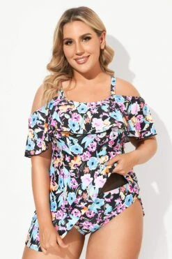 Floral Printed Off-the-Shoulder Flounce Swimdress