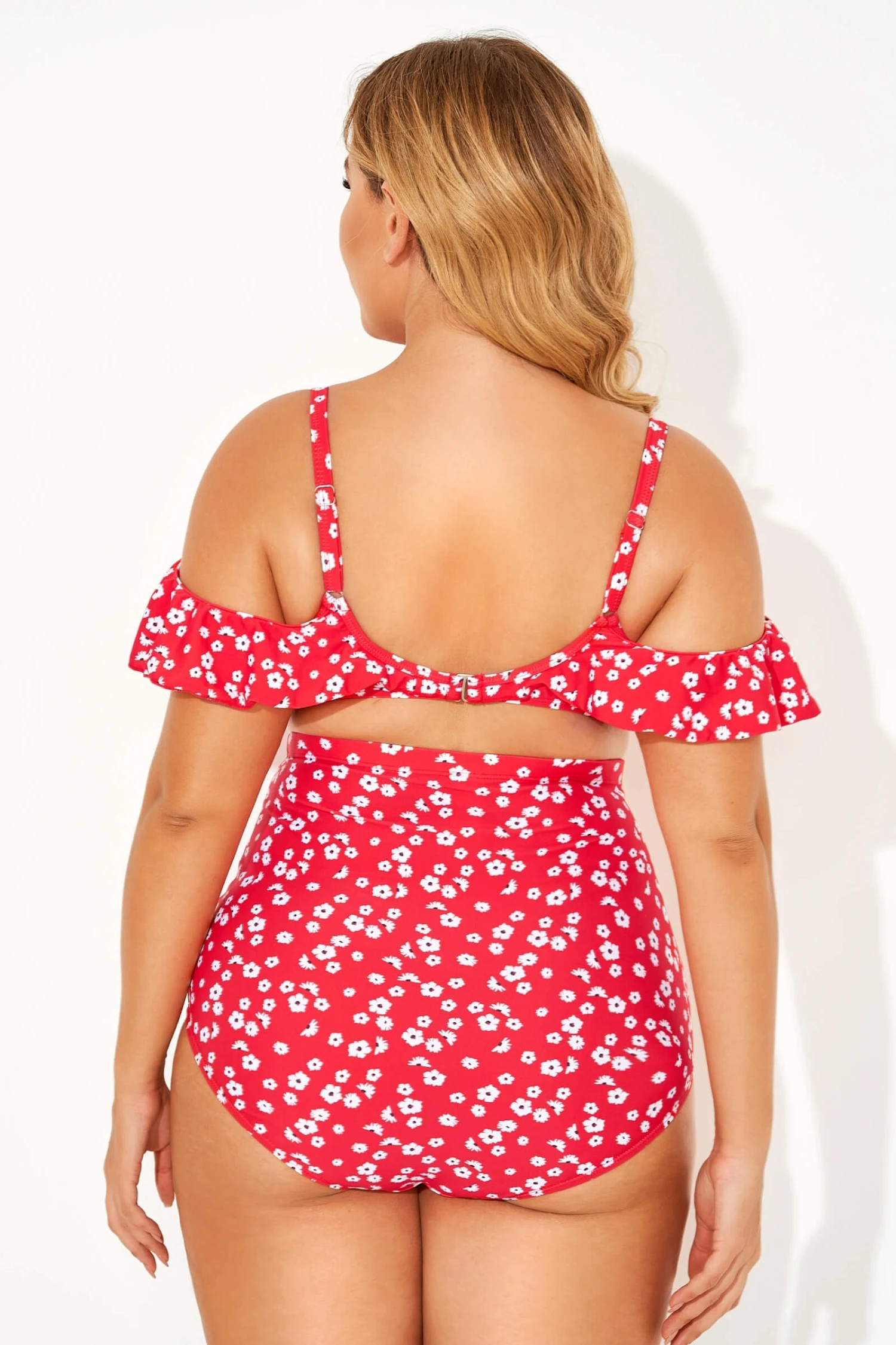 Red Floral Ruffled Underwire Women Bikini Top -Bikini Bliss Shop b debk073001 2