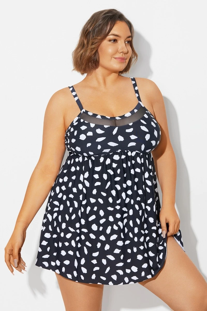 White Polka Dots Print Mesh Panel Swimdress -Bikini Bliss Shop b desd120001 3